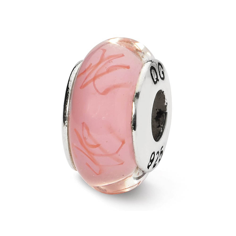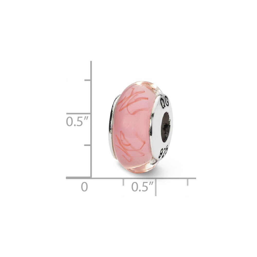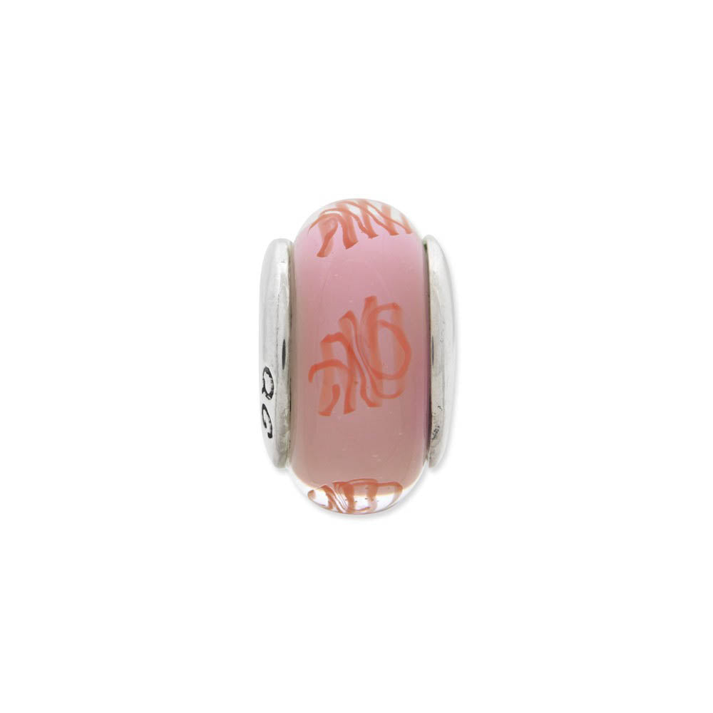 Sterling Silver Pink, Red Scribbles Hand-Blown Glass Bead Charm, 13mm