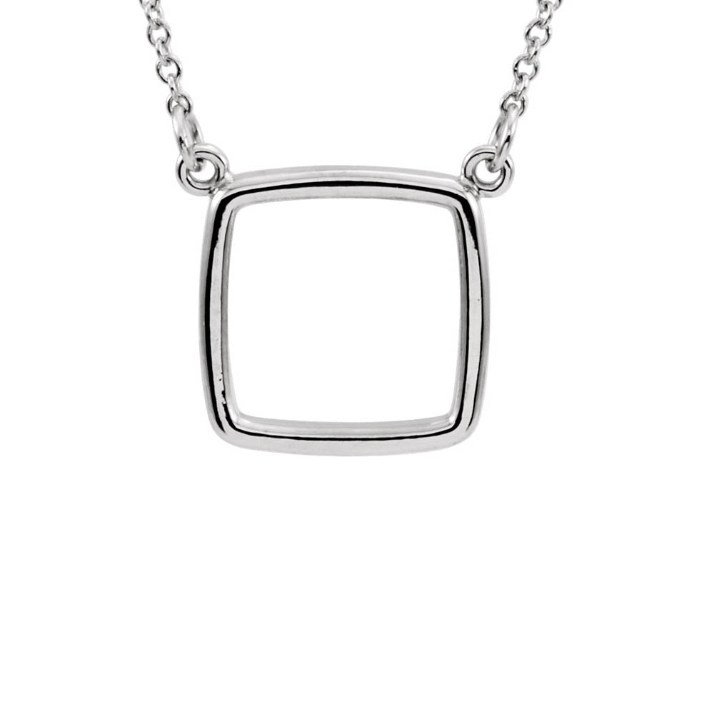 Polished 13mm Cushion Square Necklace in 14k White Gold, 16 Inch