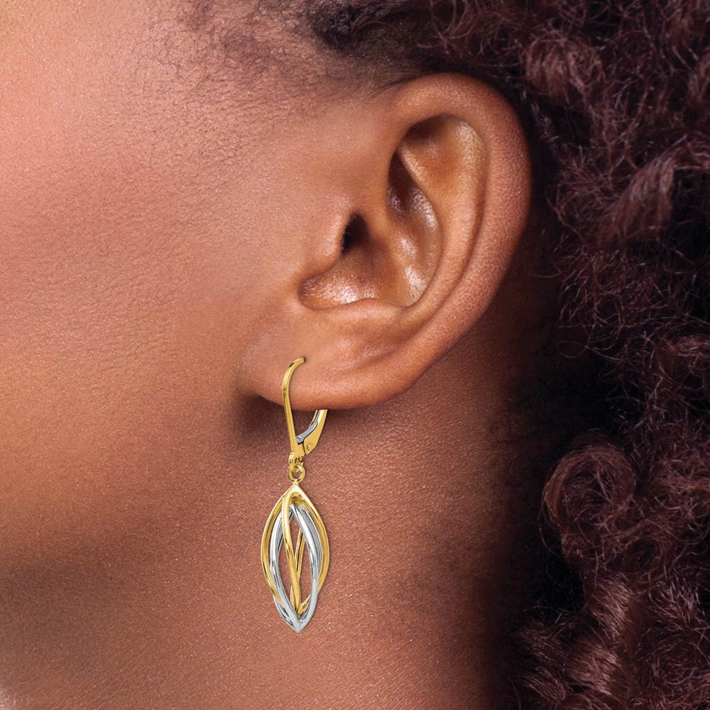 Polished 14k Two Tone Gold Spiral Lever Back Earrings, 8 x 36mm