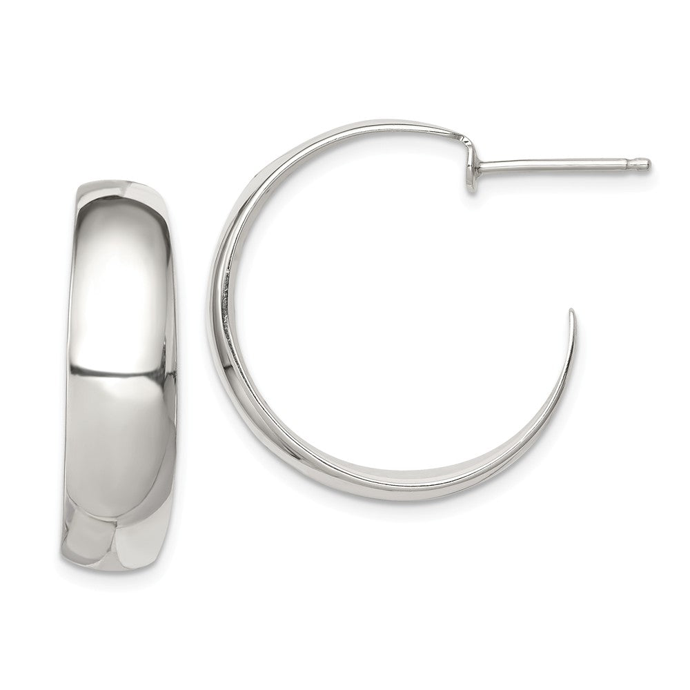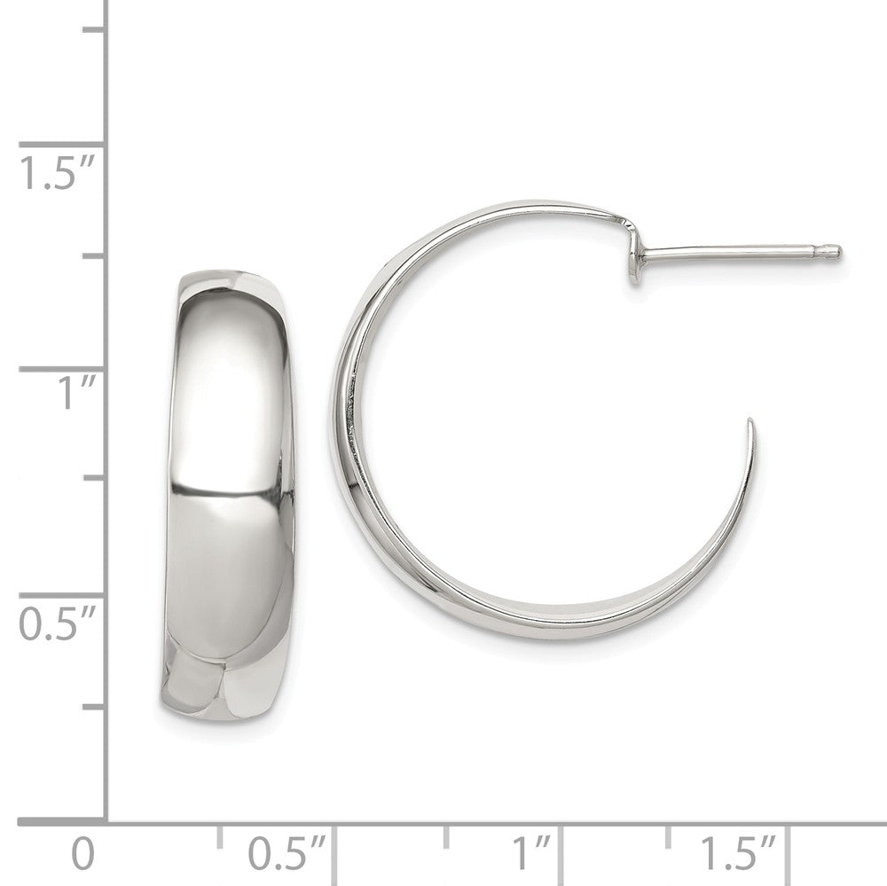 Polished Sterling Silver, Half Round Half Hoops - 25mm (1 in) - Black Bow Jewelry Company