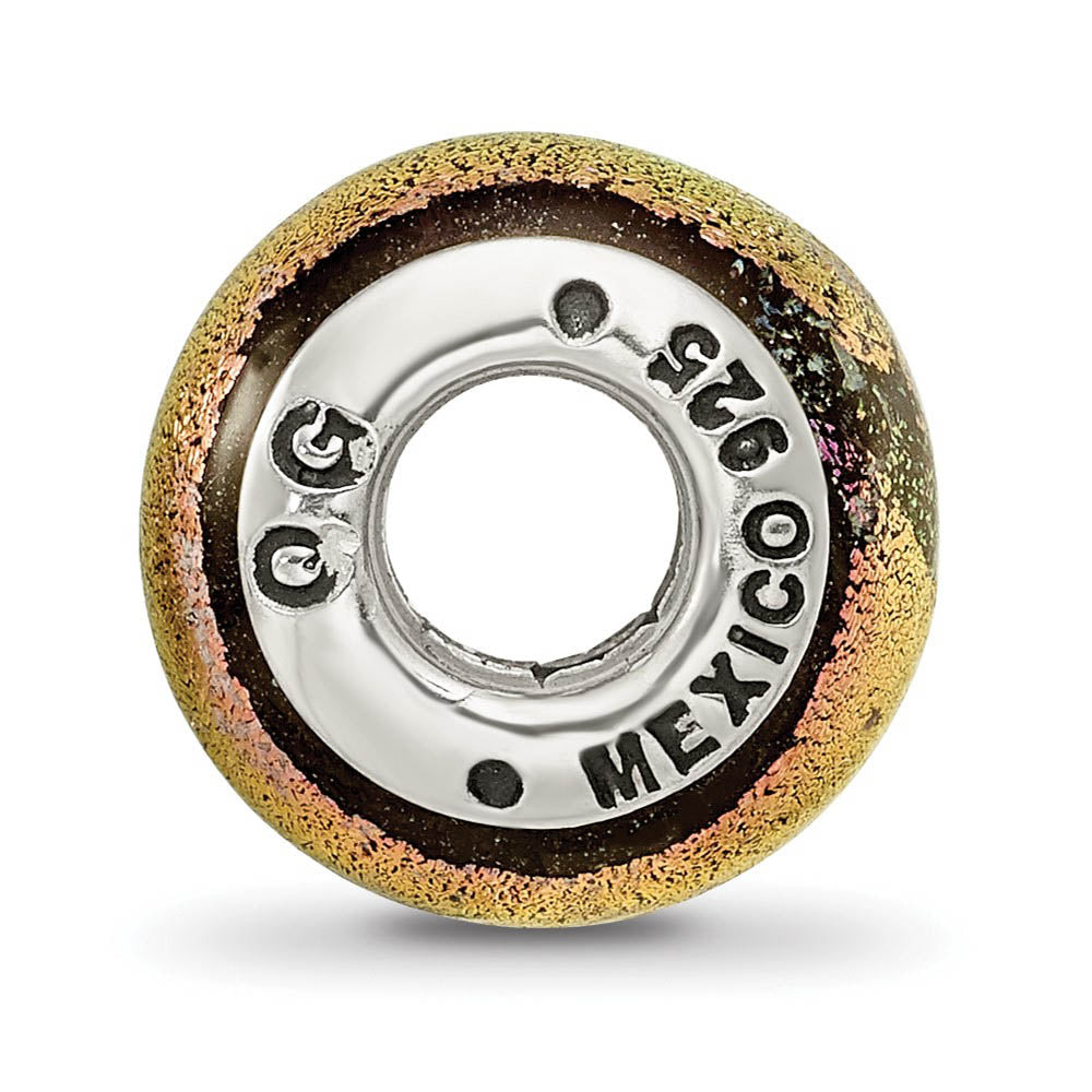 The name 'dichroic' comes from a Greek word meaning 'two colors'. The main characteristics of dichroic glass are the transmitted color, where light passes through the glass, and a completely different reflective color. Because dichroic glass charms are individually handmade, each piece will be unique with slight variations in color and pattern. Measuring approximately 13mm in diameter with a 4mm sterling silver center, it is interchangeable as well as compatible with Reflections and other popular 3mm width bead style bracelets and necklaces.