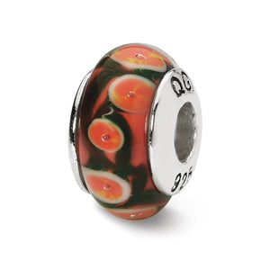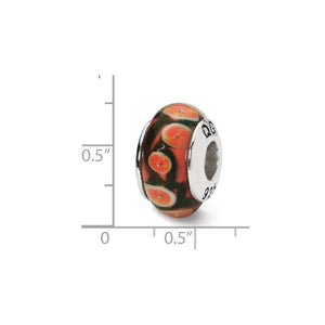 Red, Orange Hand-Blown Glass & Sterling Silver Bead Charm, 13mm - Black Bow Jewelry Company