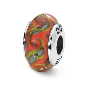 Red, Teal Swirl Hand-Blown Glass & Sterling Silver Bead Charm, 13mm