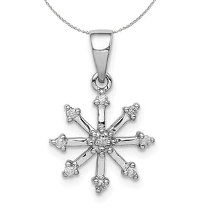 Rhodium Diamond Snowflake Pendant in Sterling Silver Necklace