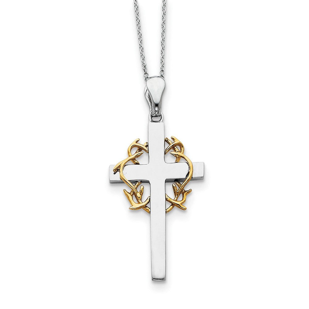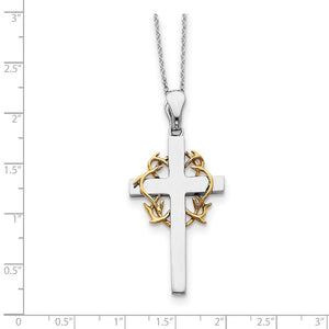 Rhodium/Gold Tone Plate Sterling Silver No Greater Love Cross Necklace