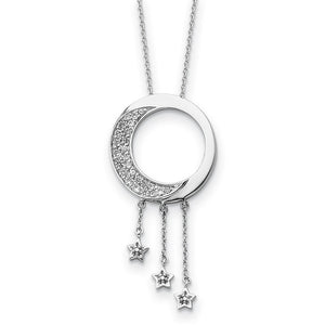 Rhodium Plated Sterling Silver & CZ Moon and Stars Necklace, 18 Inch