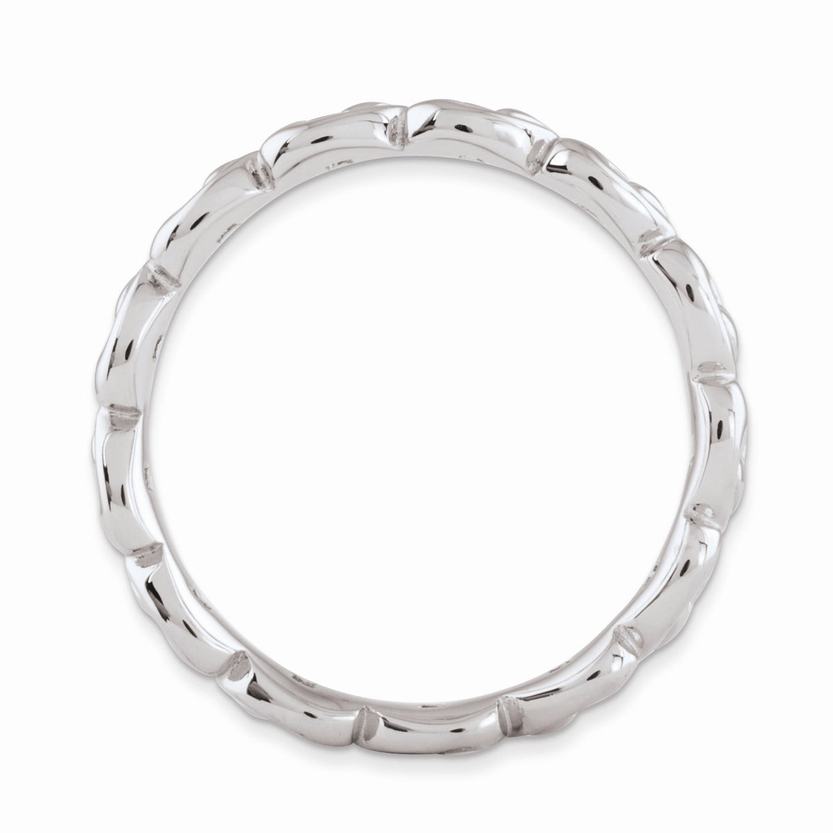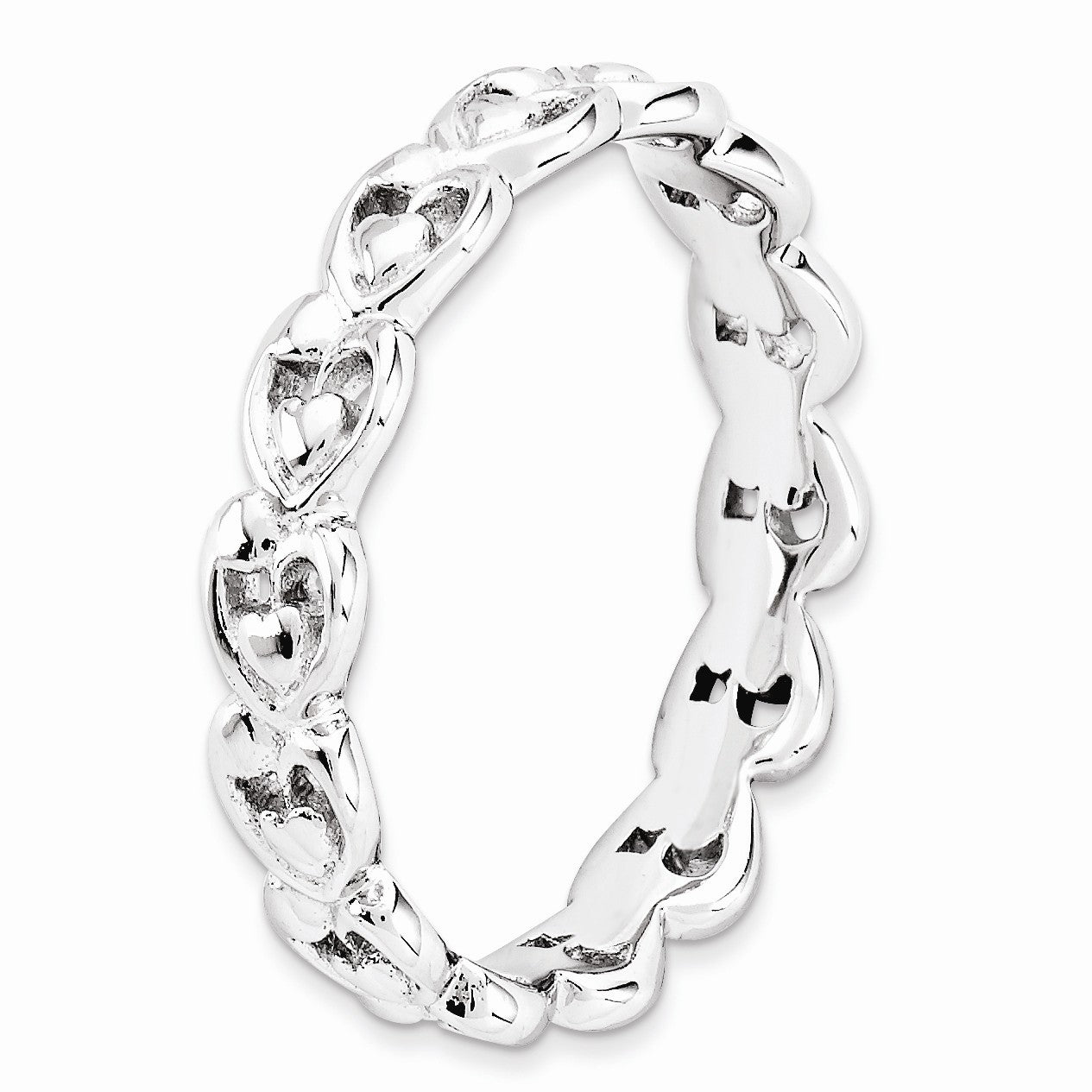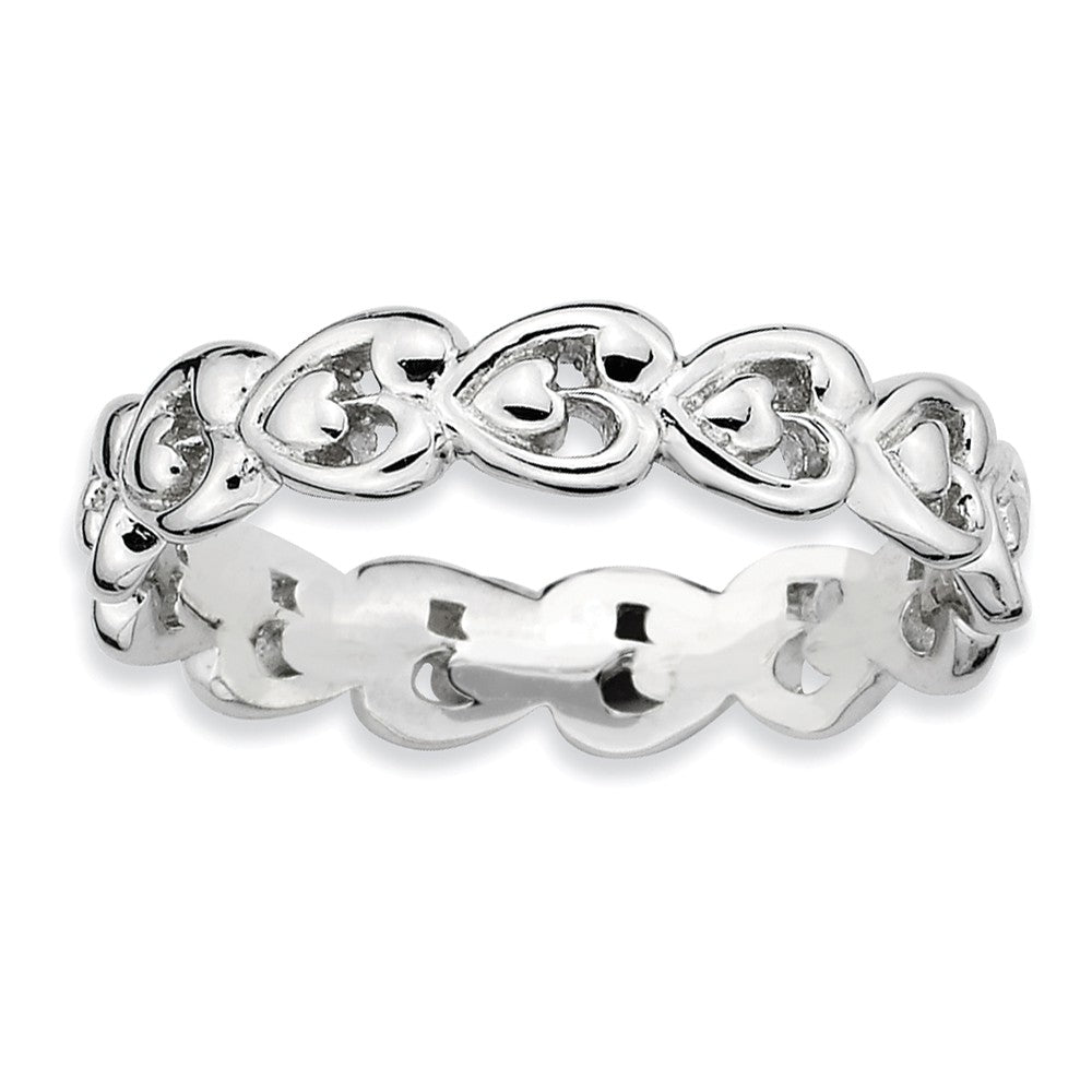 Make it simple and stylish with bands of different textures, finished, widths and colors! This rhodium plated sterling silver band features a double heart design with a polished finish and measures 4. Mm wide. Guaranteed to fit together perfectly with all of the mix and match Stackable Expressions rings.
