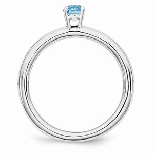 Rhodium Plated Sterling Silver Stackable 4mm Round Blue Topaz Ring