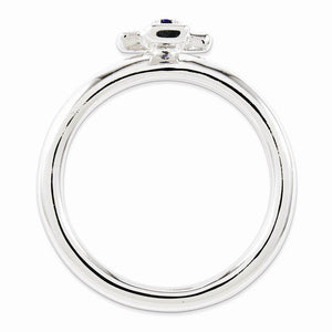 Rhodium Sterling Silver Stackable Created Sapphire 9mm Cross Ring - Black Bow Jewelry Company