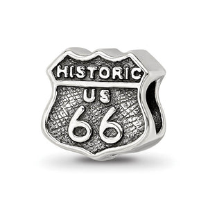 Your design ideas, our wide selection of charms created to inspire, will generate an elegant signature piece of jewelry that you will treasure forever. Handmade with outstanding detail and quality, this sterling silver historic route 66 charm measures roughly 10 x 8mm and features a 4mm center. All of our charms are interchangeable as well as compatible with other popular 3mm width bead style bracelets and necklaces.