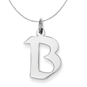 Initial attraction in an artisan block design fashioned from polished sterling silver. Each upper case letter is approximately 15mm (9/16 inch) in length and dangles from a classic jump ring that will fit up to a 3mm width chain. Includes a 1.25mm, 20 inch sterling silver cable chain.