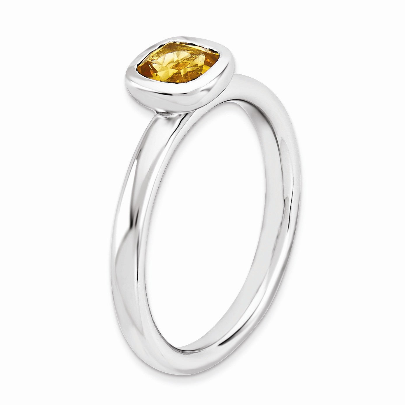 Citrine, November's birthstone enhances self-confidence, self-discipline and creativity bringing happiness and optimism. This 2.5mm polished band fashioned from rhodium plated sterling silver is bezel set in a low profile mounting with a cushion cut gemstone that will add vibrant color to your finger. Guaranteed to fit together perfectly with all of the mix and match Stackable Expressions rings.