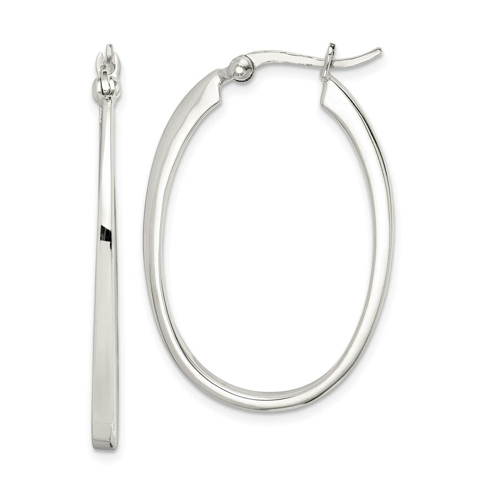 Remarkably beautiful, these oval hoops fashioned from polished sterling silver feature a flat, square tube design for when you want something just a little different. They measure 37mm (1-7/16 inch) long by 26mm (1 inch) wide and are finished with a snap-tight hinged post.