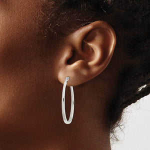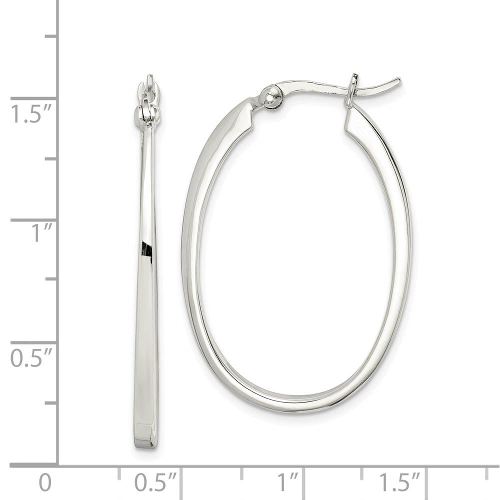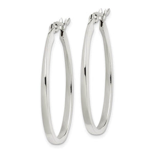 Square Tube Oval Hoop Earrings in Sterling Silver - 37mm - Black Bow Jewelry Company