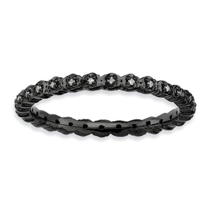 Stackable Black Plated Silver 1/15 Ctw HI/I3 White Diamond Band