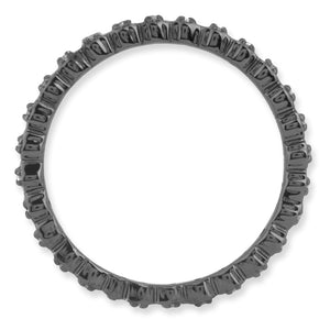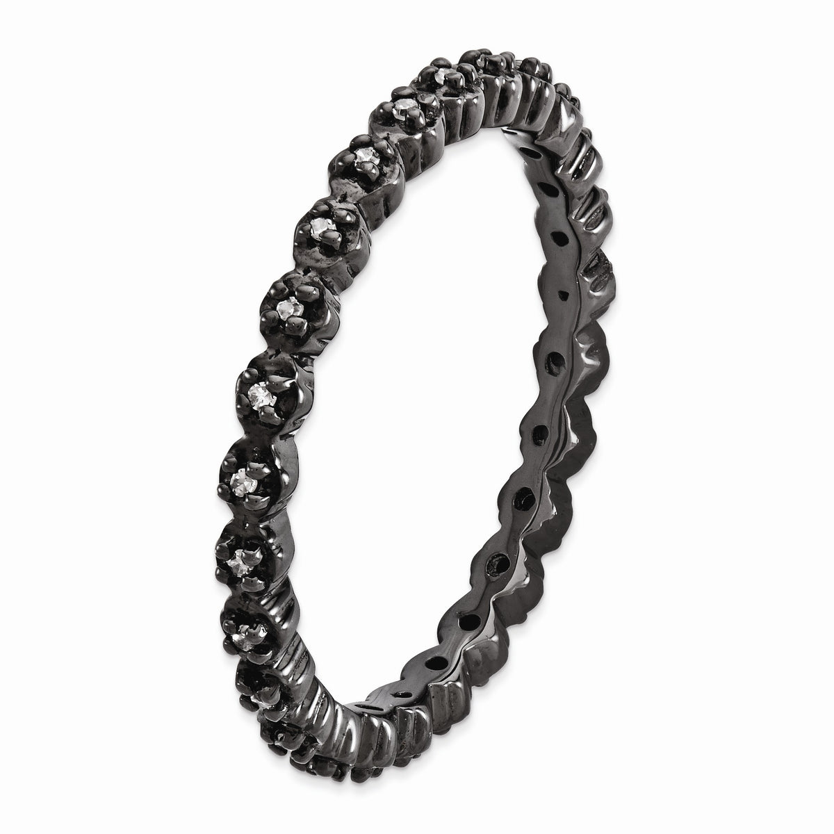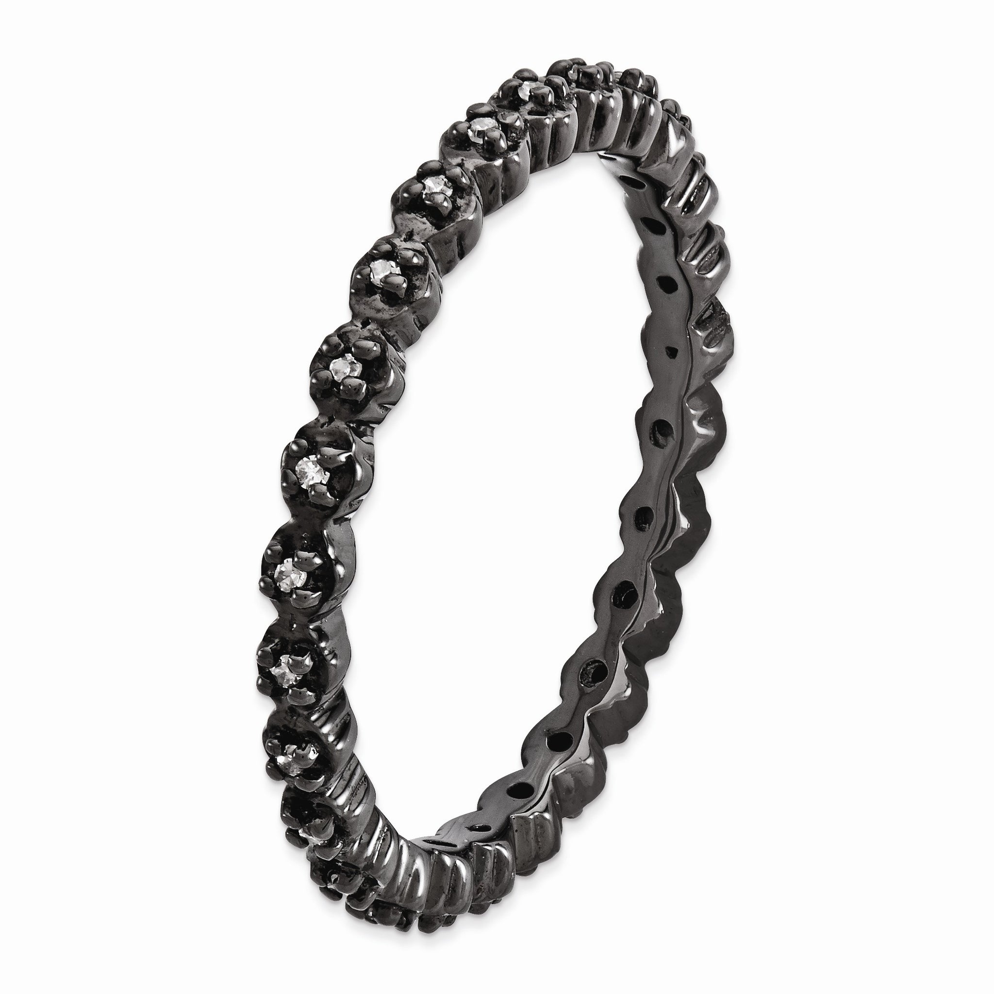 Adorn your hands with the sparkle of diamonds! Wrapped all the way around this 2.5mm sterling silver band finished with a black ruthenium plating is round, I3 clarity, H-I color diamonds. A full assortment of Stackable Expressions rings guaranteed to fit perfectly together is available in wide range of textures, finishes, widths and colors.