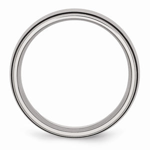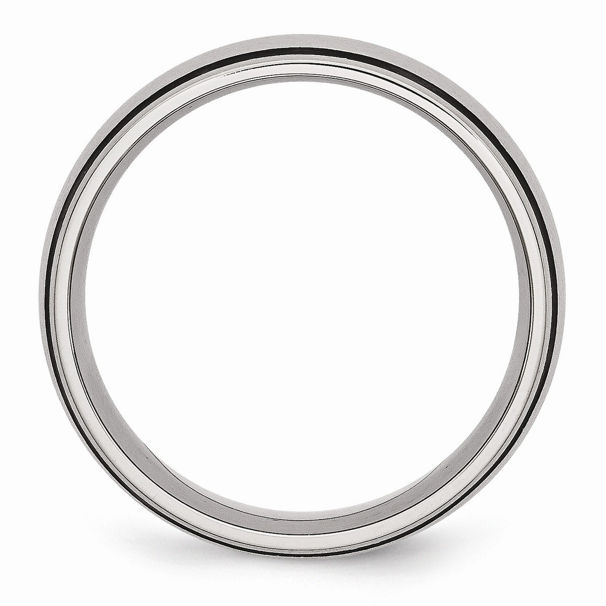 • This contemporary, unisex ring created from 316L stainless steel features a trendy, satin brushed finish with black rubber accent stripes. The band measures 8mm in width and has a standard fit shank. Is perfect for everyday wear. Available in whole and half sizes 6-13.