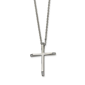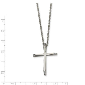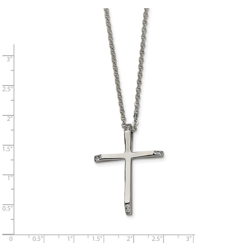 Stainless Steel Cubic Zirconia Cross Pendant Necklace - 22 Inch