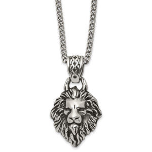 Stainless Steel Medium Antiqued Lion's Head Necklace, 24 Inch
