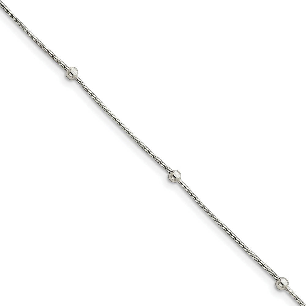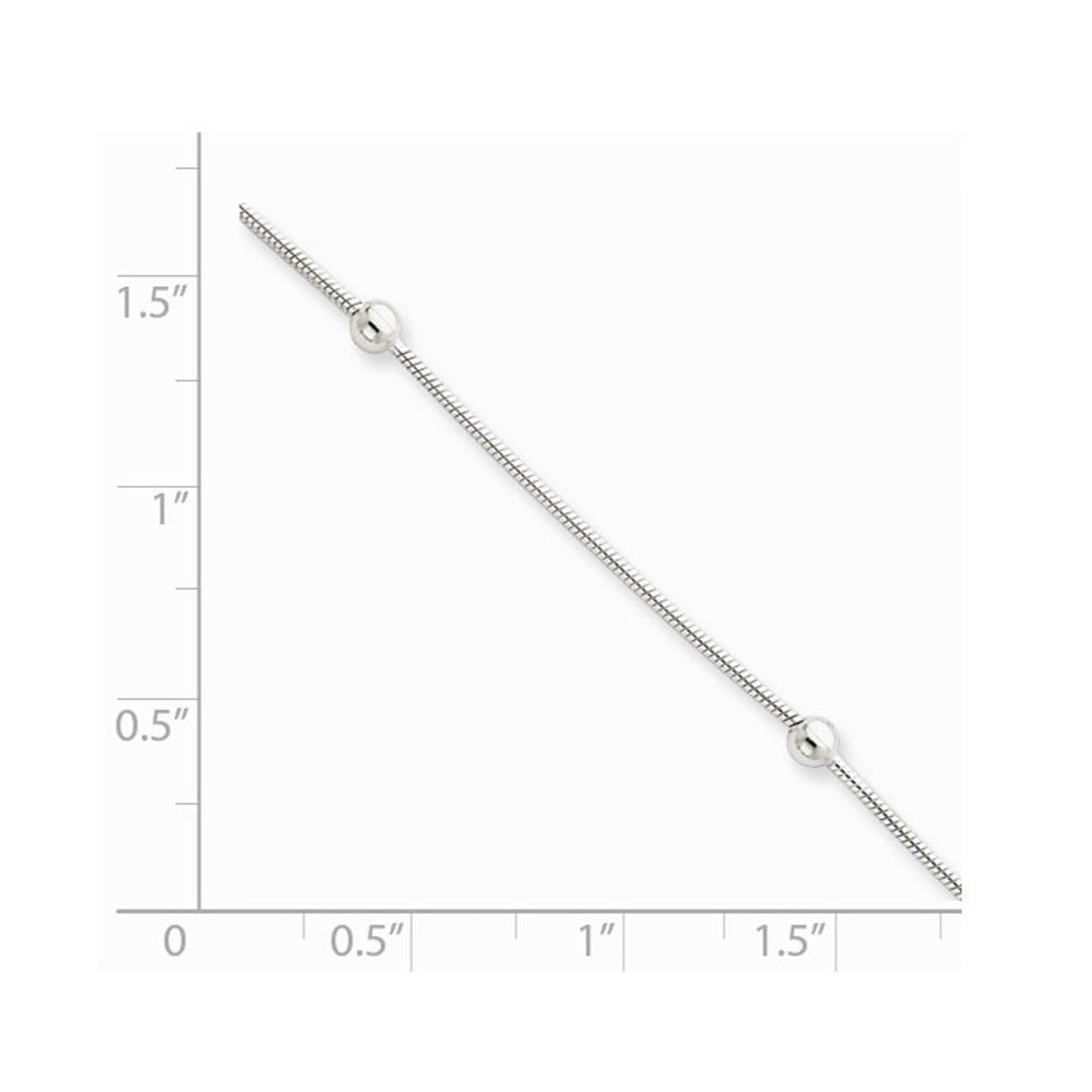 Sterling Silver 1.5mm Snake And 3mm Bead Anklet, 9-10.5 Inch