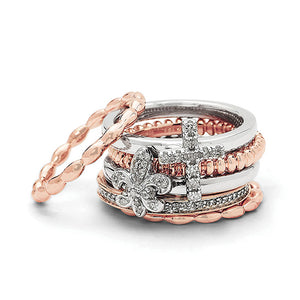 Sterling Silver & 14K Rose Gold Plated, Diamond Faith Stack Ring Set