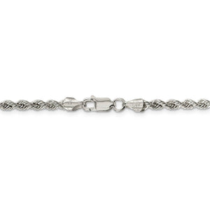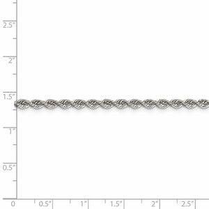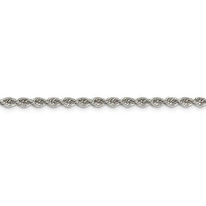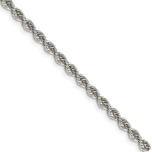A classic rope chain is the perfect indulgence for those who appreciate understated sophistication. This polished sterling silver rope chain bracelet or anklet with a lobster-claw clasp features a solid link design that is 3mm in width, 9-inches in length and looks great alone or layered with multiple chains. Made in Italy.