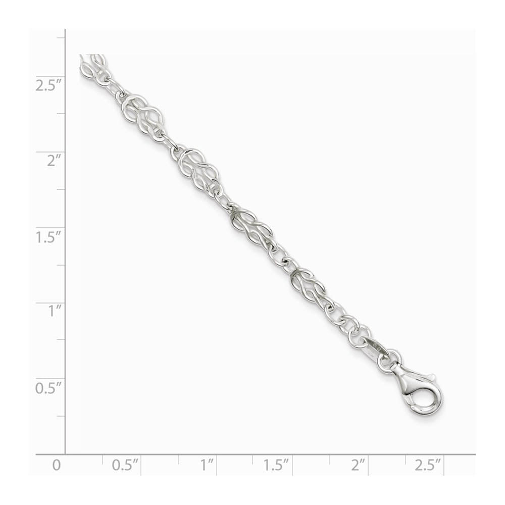 • Give your ankles the adornment they deserve with this polished sterling silver anklet featuring a solid link, fancy knot design that closes with a fancy lobster clasp. It is approximately 6mm (1/4 inch) in width by 10-inches in length.