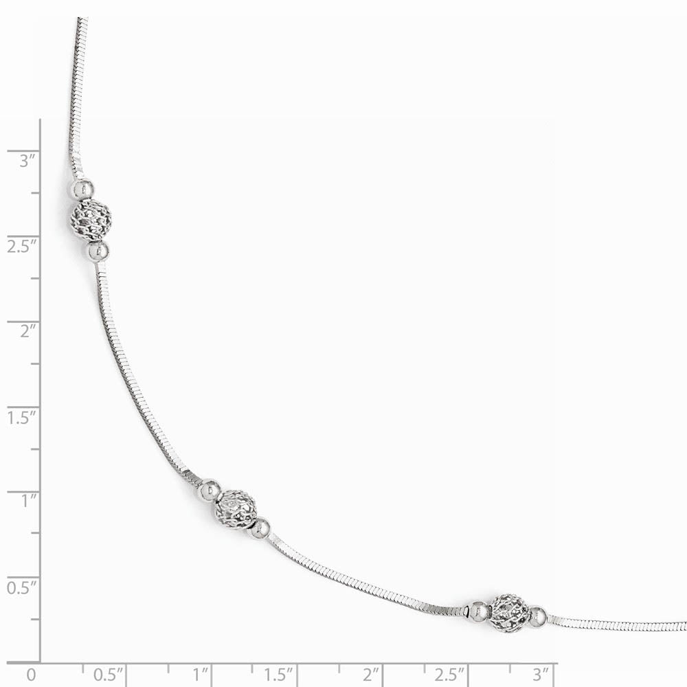 Sterling Silver 6mm Cage Bead Station And 1mm Box Anklet, 9-10 Inch - Black Bow Jewelry Company