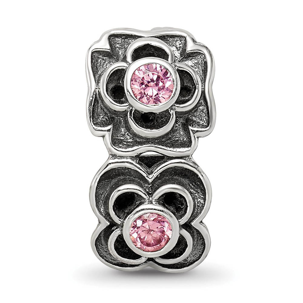 Sterling Silver and Pink Cubic Zirconia Connector Bead Charm - Black Bow Jewelry Company