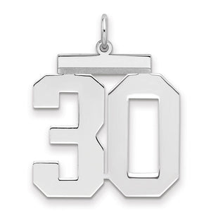 Sterling Silver, Athletic Collection, Large Polished Number 30 Pendant