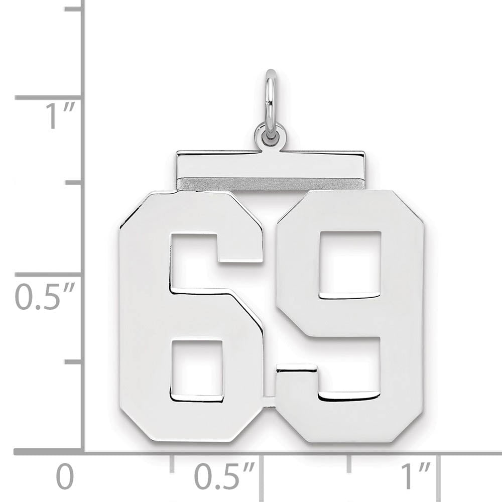 Sterling Silver, Athletic Collection, Large Polished Number 69 Pendant