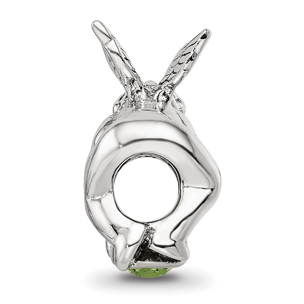 Celebrate the day you were born or that of a loved one with a birthstone charm and attach sentimental meaning to your jewelry. This sterling silver, 3-dimensioal design enhanced by an oxidized finish to increase the definition features a peridot cubic zirconia gem for August birthdays. All of our angel charms measures roughly 13 x 17mm with a 4mm core that is interchangeable as well as compatible with Reflections and other popular 3mm width bead style bracelets and necklaces.