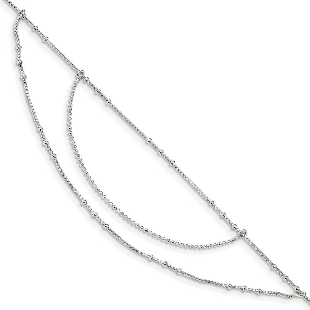 Sterling Silver Beaded Box Chain Swag Anklet, 9-10 Inch - Black Bow Jewelry Company