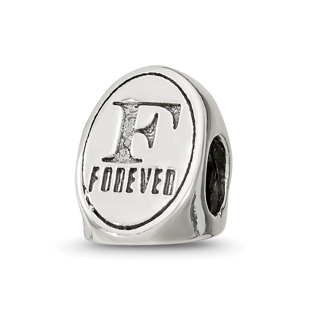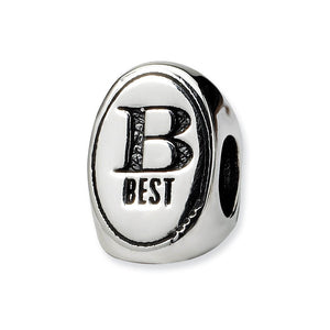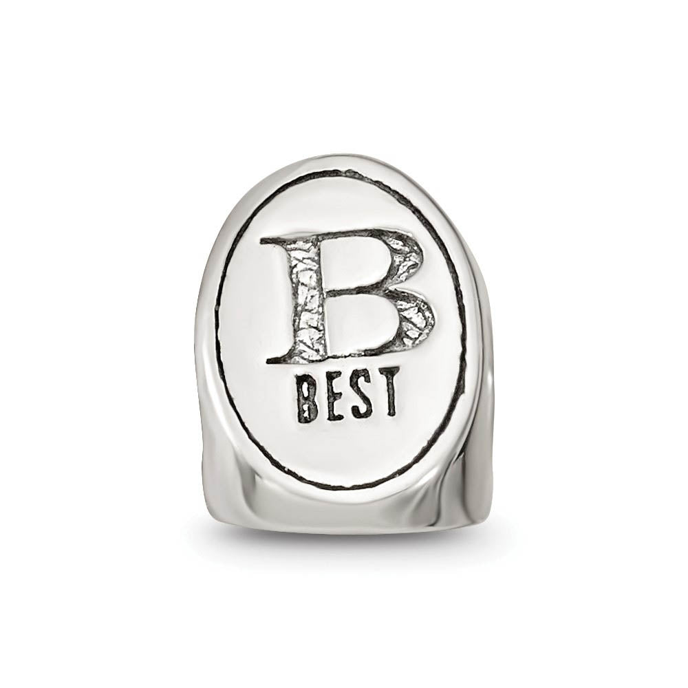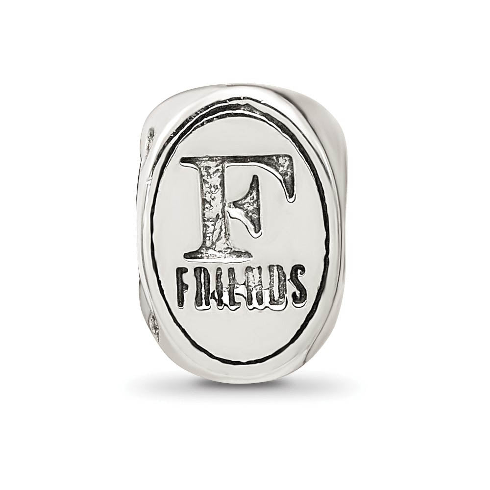 A simple message with a big impact! Your BFF will be saying OMG when you give her this 3-sided oval charm inscribed with BEST, FRIENDS, and FOREVER. Handcrafted from sterling silver to last a lifetime, this single expressive charm accented with bold initials measures approximately 12 x 8mm. It features a 4mm bead hole that is interchangeable as well as compatible with Reflections and other popular 3mm width bead style bracelets and necklaces.