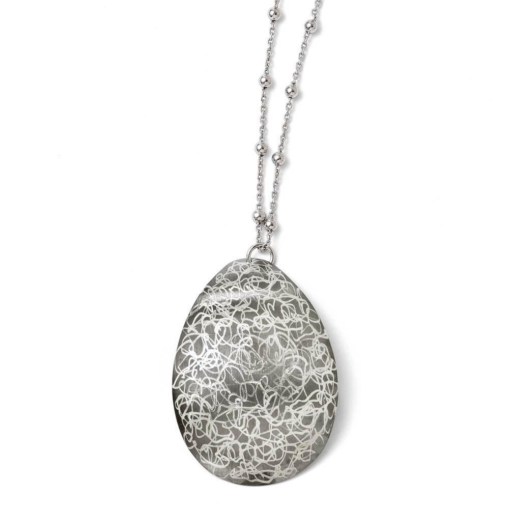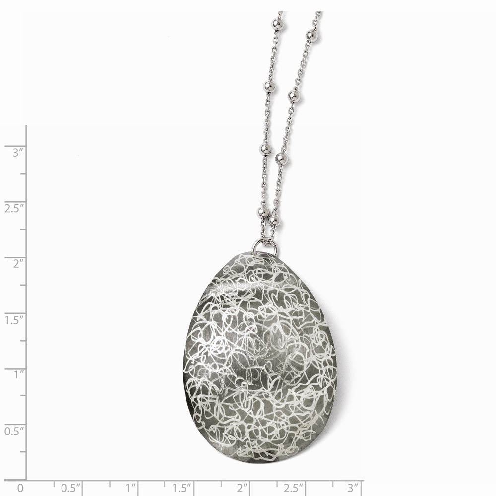 Sterling Silver, Black-Plated & Etched Finish Oval Necklace, 16-18 in