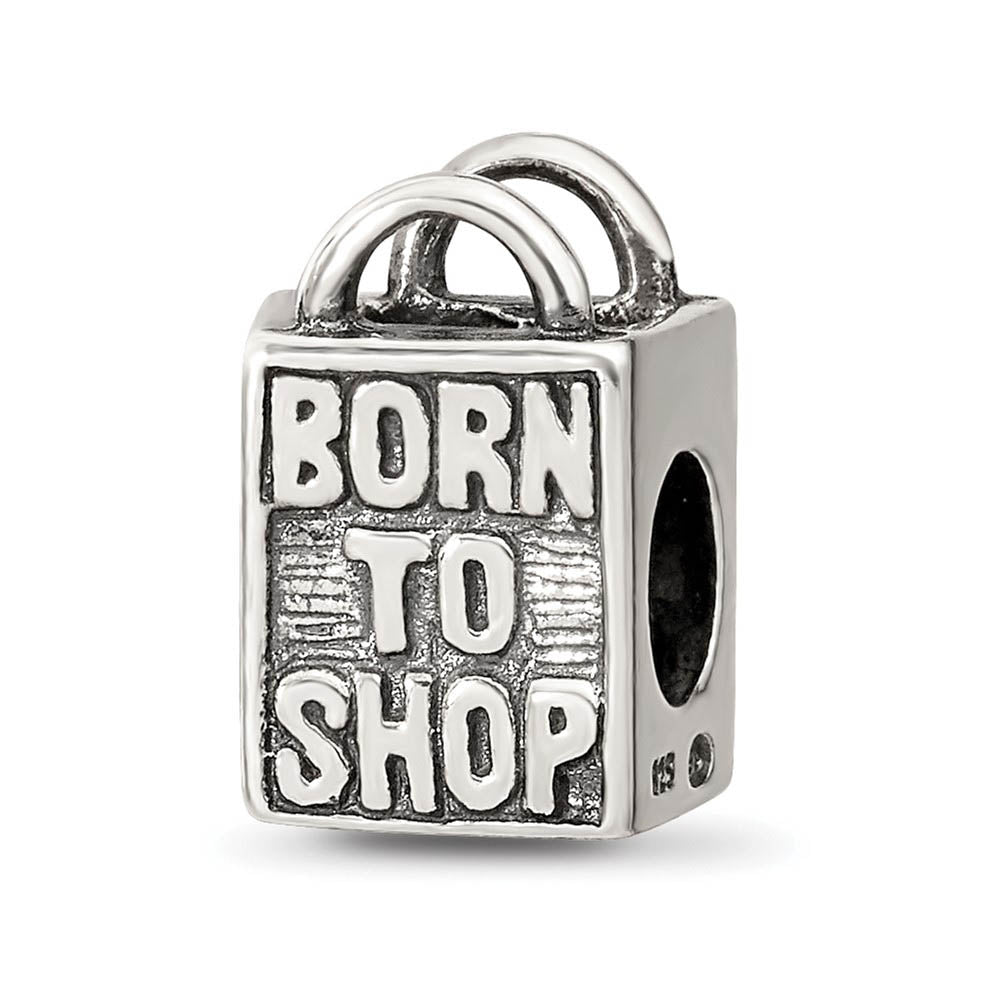 Sterling Silver Born to Shop, Shopping Bag Bead Charm - Black Bow Jewelry Company