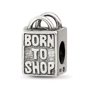 Sterling Silver Born to Shop, Shopping Bag Bead Charm