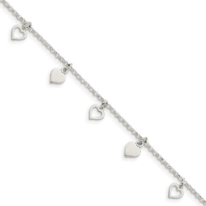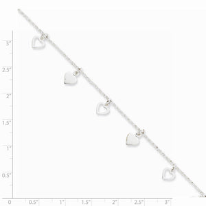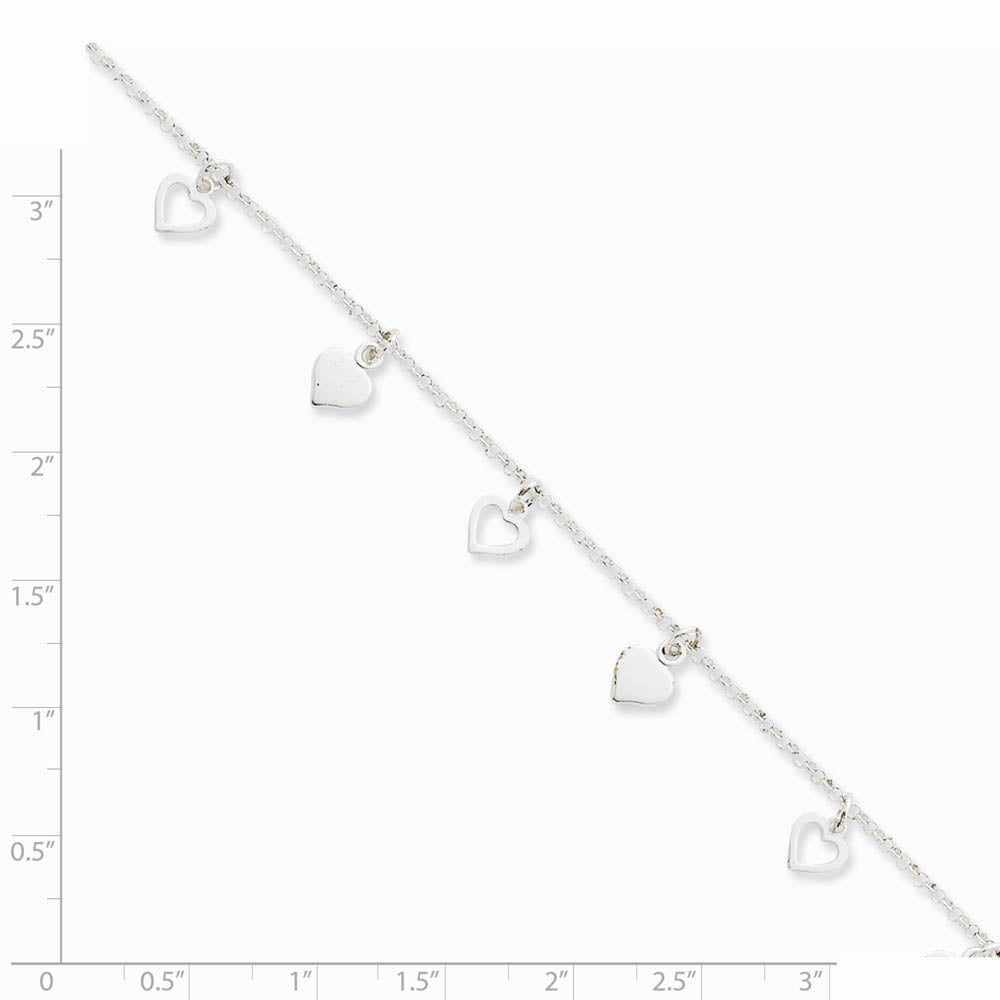 Sterling Silver Dangling Hearts Anklet, 10 Inch