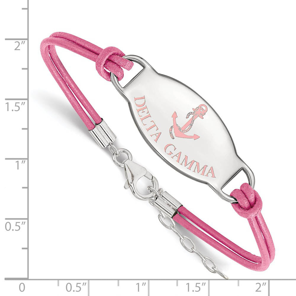 Sterling Silver Delta Gamma Enamel Pink Leather Bracelet - 7 in.