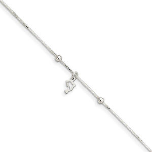 Sterling Silver Dolphin Silhouette Anklet, 8-9 Inch