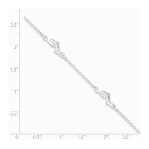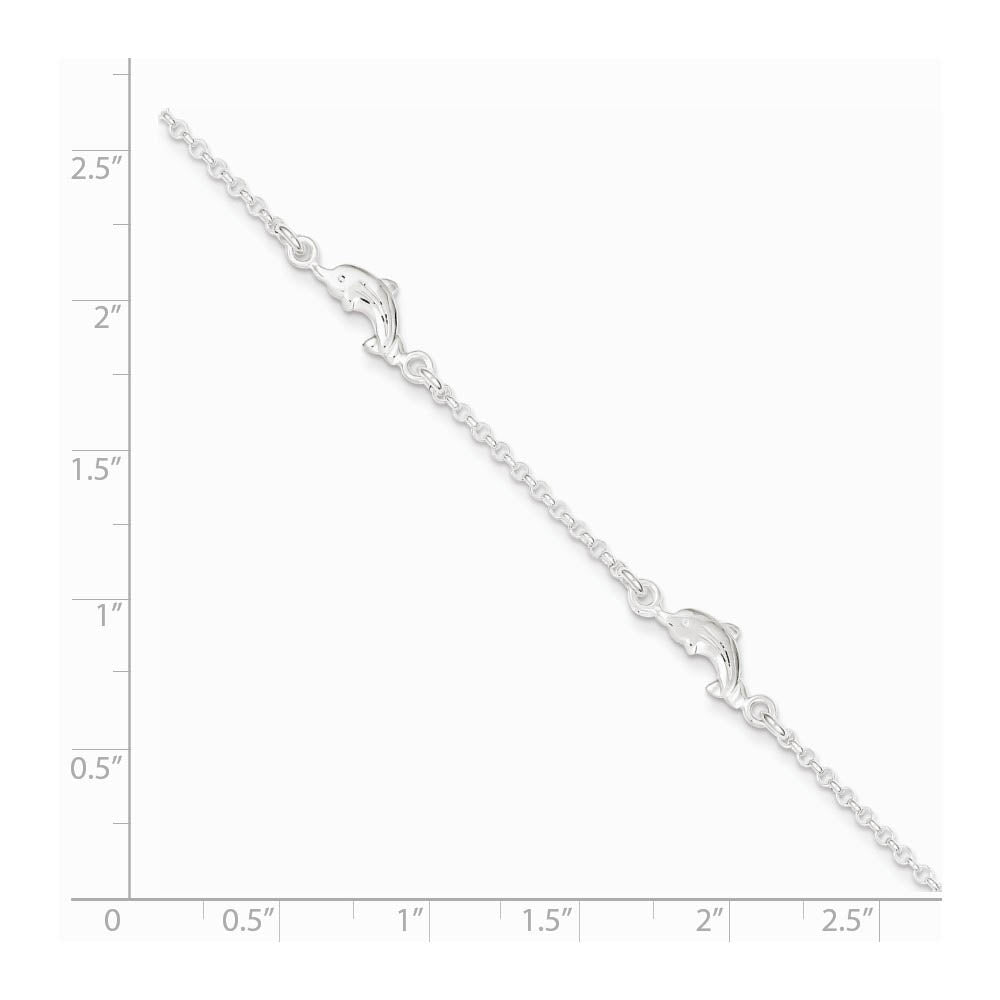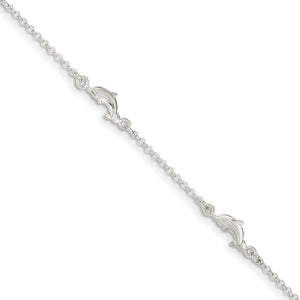 Reflect a fun loving spirit with our dolphin station link ankle bracelet created from sterling silver with a bright, polished finish. This 1.5mm, 9-inch rolo chain anklet is finished a 1-inch extender and fancy lobster clasp.