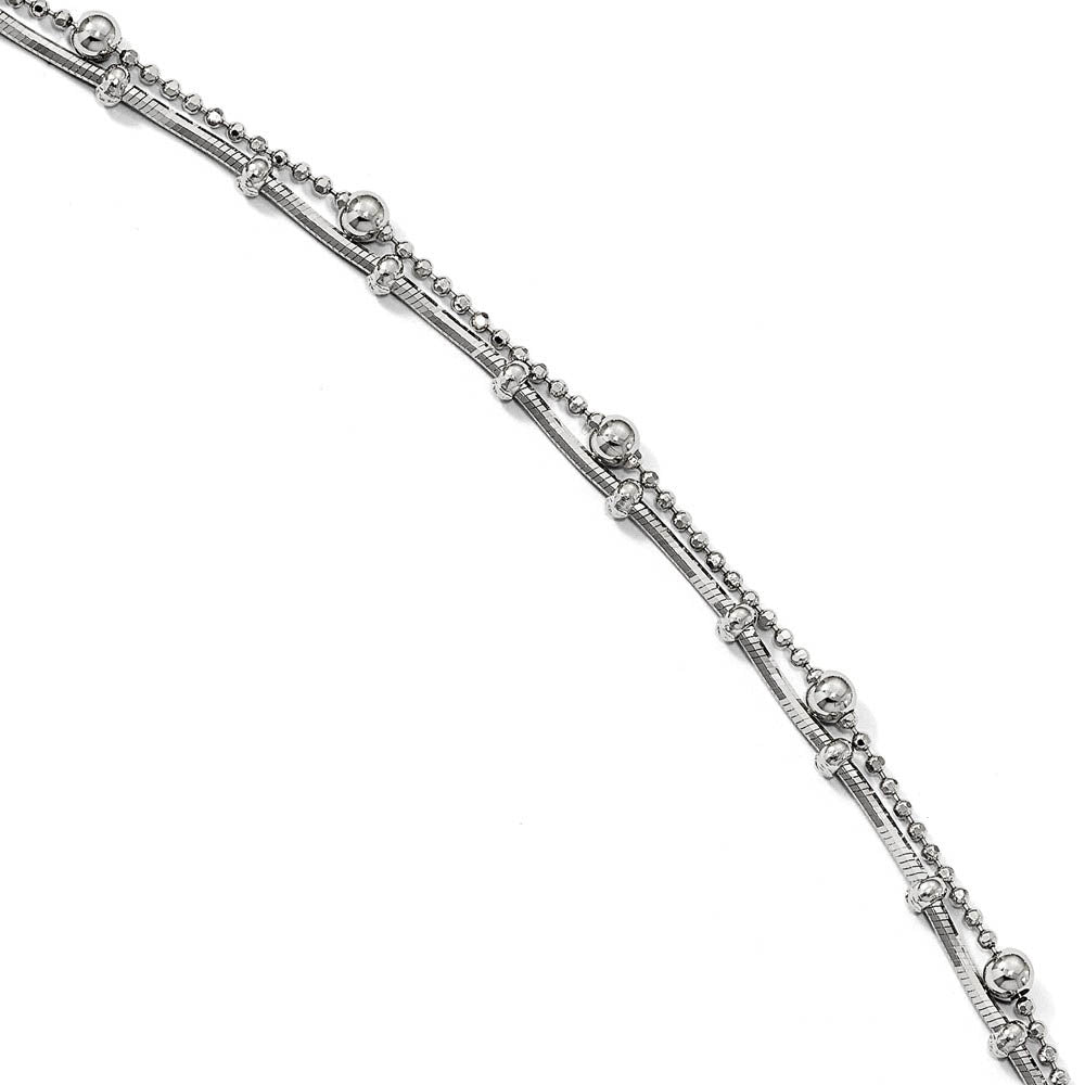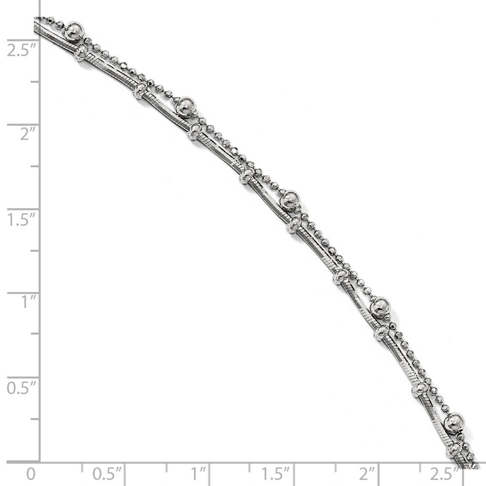 Sterling Silver Double Strand Fancy Beaded Anklet, 9-9.5 Inch - Black Bow Jewelry Company