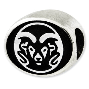 Show your CSU spirit with this enameled sterling silver collegiate charm that reverses to reveal the Rams logo. It measures approximately 10 x 12mm with a 4mm core that is interchangeable as well as compatible with Reflections and other popular 3mm width bead style bracelets and necklaces. The school colors of medium green, gold and white are available in our crystal charms.