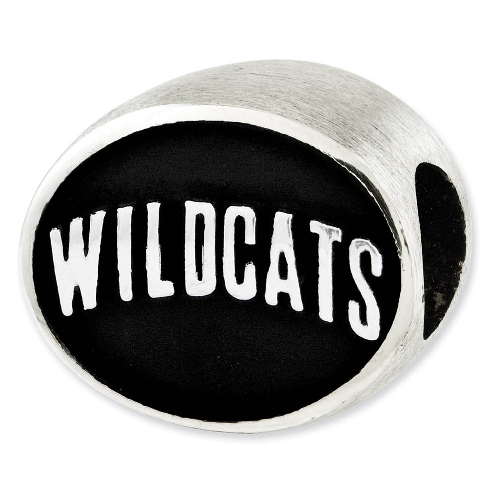 Show your Wildcats spirit with this enameled sterling silver collegiate charm that reverses to reveal the athletics logo. It measures approximately 10 x 12mm with a 4mm core that is interchangeable as well as compatible with Reflections and other popular 3mm width bead style bracelets and necklaces. The school colors of dark blue and white are available in our crystal charms.