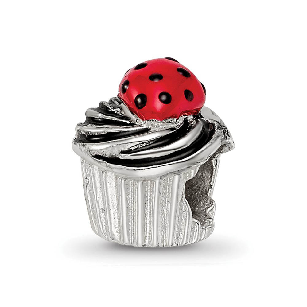 Unique designs begin with a single bead, unleash your creativity and have some fun! Handcrafted in wax then cast in sterling silver with an antiqued finish, this cognac enameled cupcake topped with a red strawberry measures roughly 12 x 10mm with a 4mm center. It is interchangeable as well as compatible with Reflections and other popular 3mm width bead style bracelets and necklaces.