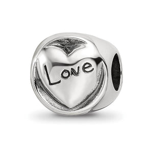 Create fashionable jewelry designs with this inspirational charm aimed to reflect your personality and lifestyle. Whether it is formal, casual, energetic or relaxed, this antiqued sterling silver bead will help tell your story. This single sterling silver charm features a three-sided design depicting the words Faith, Hope, Love and measures approximately 10mm in width by 10mm in length with a 4mm center that is interchangeable as well as compatible with Reflections and other popular 3mm width bead style bracelets and necklaces.