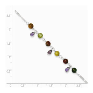 Sterling Silver Fancy Multicolor Jasper Anklet, 9 Inch