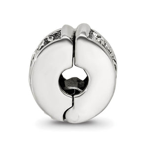 Fit a versatile hinged charm, which opens to clip anywhere, on your 3mm chain or leather cord to stop groups of charms from sliding around or falling off your bracelet or necklace. Measuring approximately 13 x 8 mm with a 3mm core, this antiqued sterling silver floral charm is interchangeable as well as compatible with Reflections and other popular 3mm width bead style bracelets and necklaces. Not recommended for rubber cords.