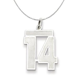 Celebrate your favorite sports player, lucky number or milestone date in your life with a prominent rhodium-plated sterling silver charm. Each laser-cut satin and polished number is approximately 15mm (9/16 inch) in length, which is finished with a 3mm top bar and classic jump ring that will accommodate up to a 3mm chain. Includes a 1.25mm, 20 inch sterling silver cable chain.
