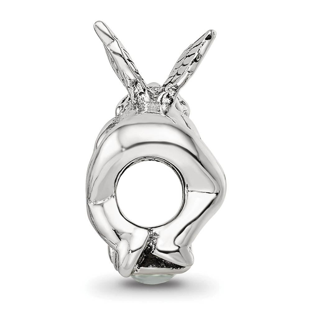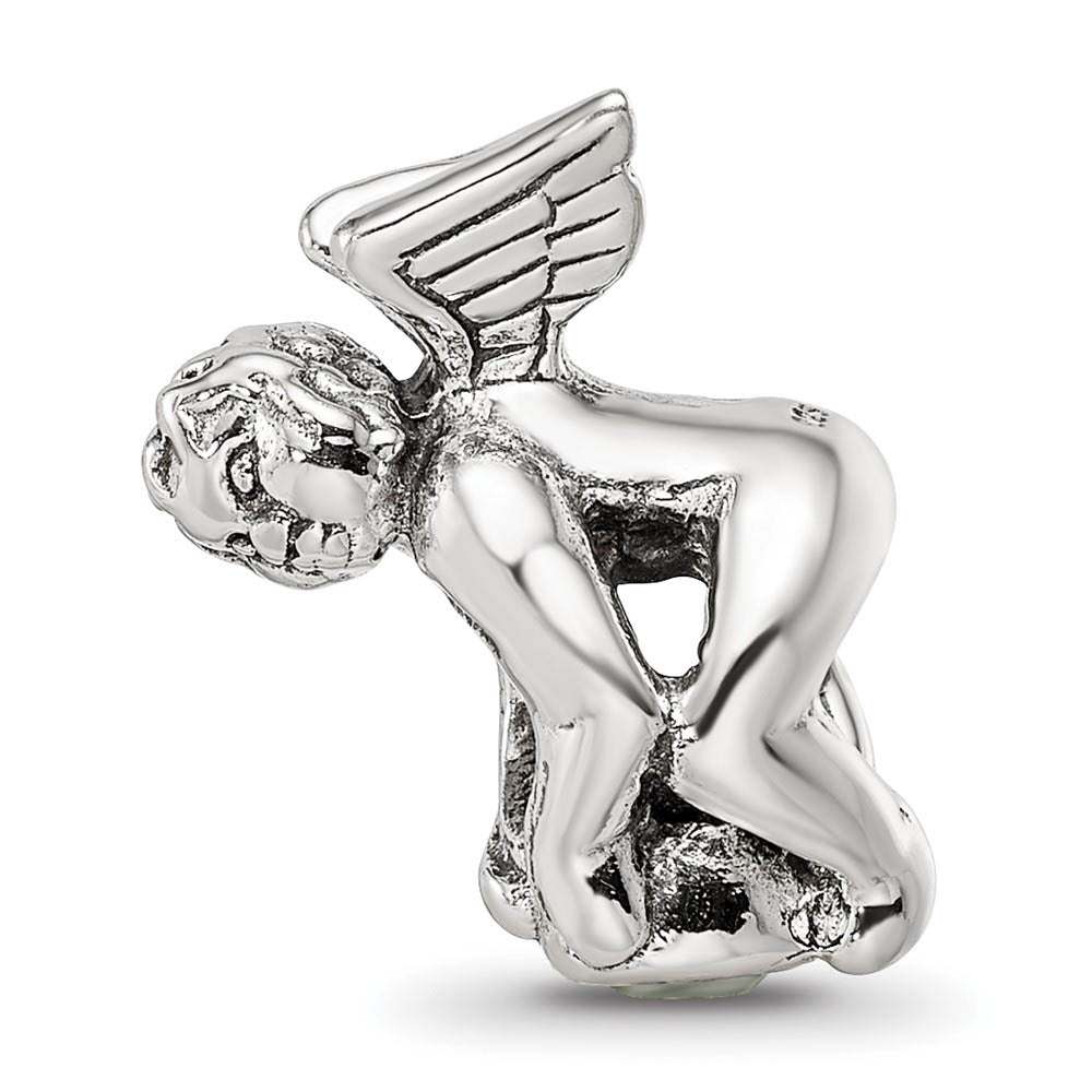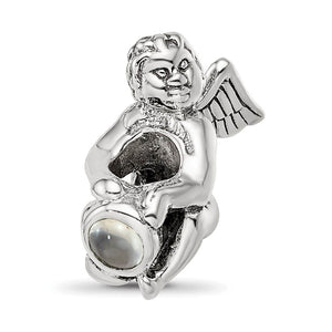 Celebrate the day you were born or that of a loved one with a birthstone charm and attach sentimental meaning to your jewelry. This sterling silver, 3-dimensioal design enhanced by an oxidized finish to increase the definition features a moonstone cubic zirconia gem for June birthdays. All of our angel charms measures roughly 13 x 17mm with a 4mm core that is interchangeable as well as compatible with Reflections and other popular 3mm width bead style bracelets and necklaces.